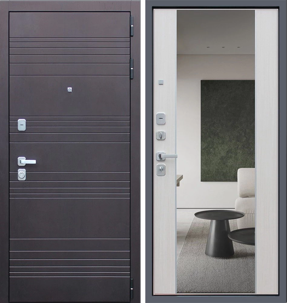 Надежная входная Дверь Дуэт с зеркалом премиум класса по цене 49 217 руб. Большая толщина стали защитит от проникновения в ваш дом, квартиру или коттедж. Используется очень качественная фурнитура: замки, цилиндры, ручки, защелки. Покрытие и отделка двери изготовлено под внимательным контролем производителя. Дверь имеет долгий срок службы и гарантию.