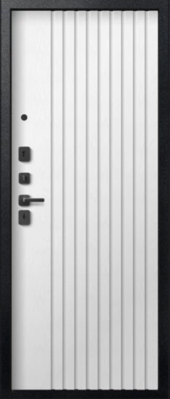 Надежная входная Дверь V-15 Черный муар + Бетон темный - Софт ясень белый премиум класса по цене 45 767 руб. Большая толщина стали защитит от проникновения в ваш дом, квартиру или коттедж. Используется очень качественная фурнитура: замки, цилиндры, ручки, защелки. Покрытие и отделка двери изготовлено под внимательным контролем производителя. Дверь имеет долгий срок службы и гарантию.